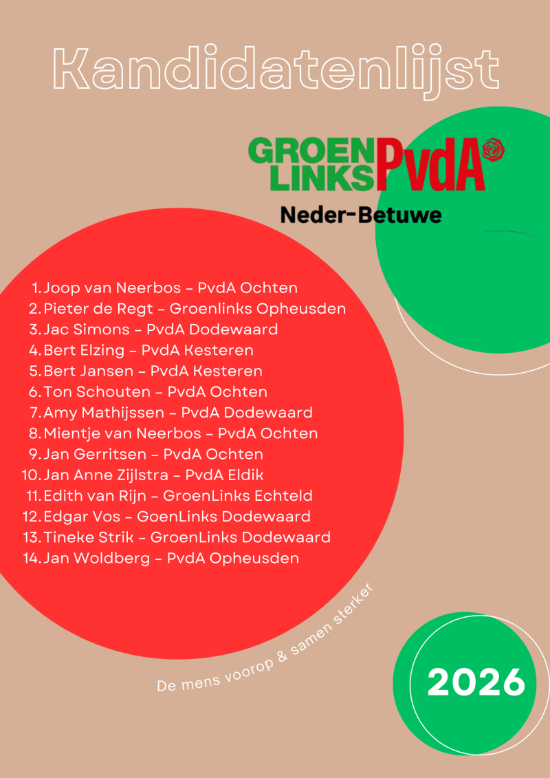 GroenLinks-PvdA Neder-Betuwe organiseert ronde tafelgesprekken om tijdig input van inwoners op te halen over belangrijke keuzes die de gemeente moet maken. Ons uitgangspunt is dat een ieder kan meedenken en meedoen, zodat besluiten tijdig, duidelijk en samen worden genomen.
